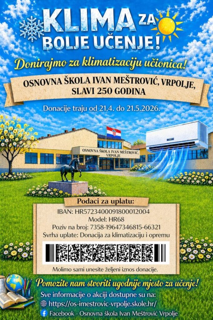 Zbog planiranih radova prekid u opskrbi električnom energijom predviđen je u Vrpolju dana 09.04.2026. (četvrtak) i to za: Mjesto: VRPOLJE Ulica: ULICA BANA JOSIPA JELAČIĆA 149-203 nep, ULICA JOSIPA GOLA 2-16 par,