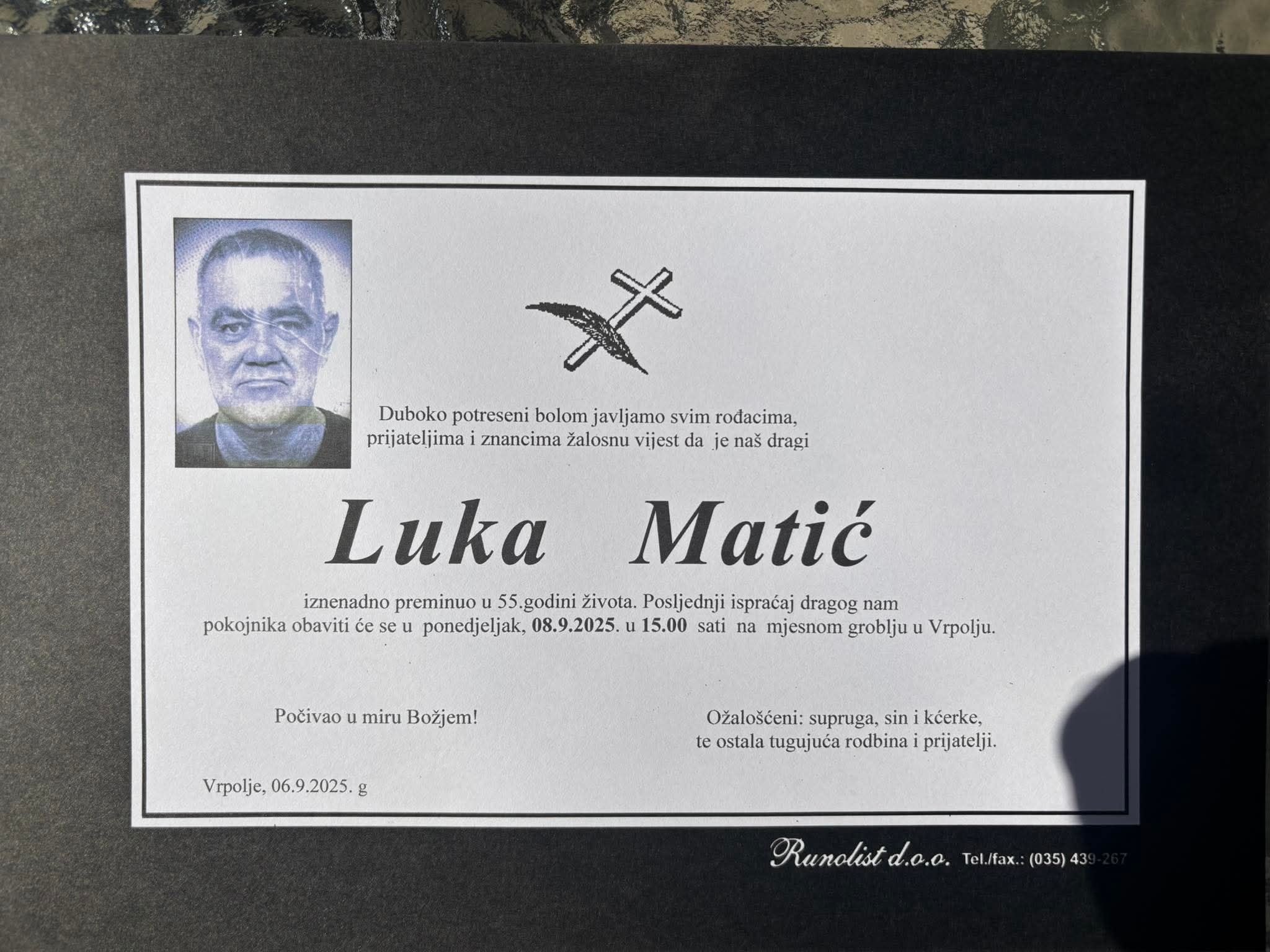 Preminuo Luka Matić Naslovna / Dobro došli na službene stranice Općine Vrpolje / Iznenada nas je napustio naš Luka. Počivao u miru Božjem.