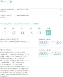 OBAVIJEST – BEZ STRUJE 16.3.2026.